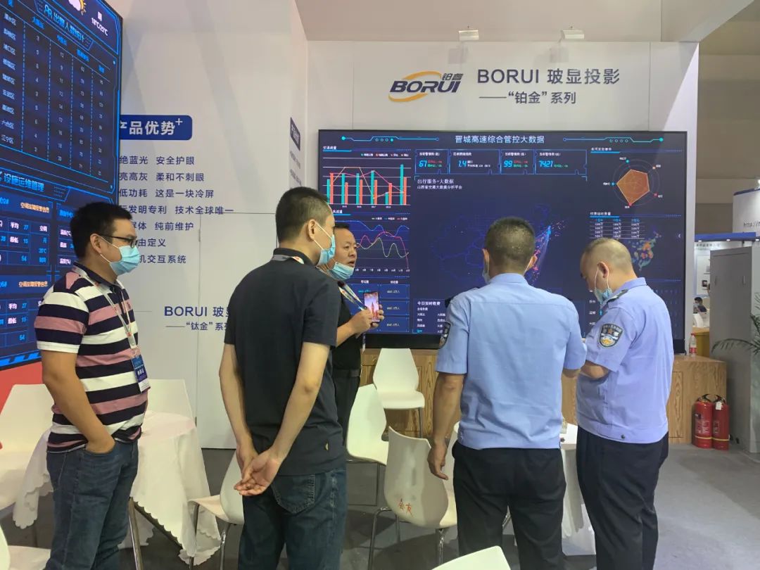 重慶市公安局科信處的領(lǐng)導也蒞臨鉑睿光電展位進(jìn)行參觀(guān)指導,技術(shù)人員為他們就不同系列的每塊屏都做了詳盡的介紹。